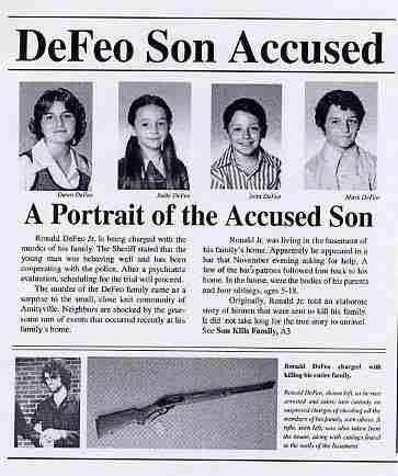 เรื่องเล่าสุดสยองของบ้านหลังนี้เริ่มต้นขึ้นในวันที่ 13 พฤศจิกายน ปี 1974 ได้เกิดเหตุฆาตกรรมสยองขึ้นในเขตอมิตี้วิล โดยมีผู้บุกรุกเข้ามาในบ้านแล้วใช้ปืนไรเฟิลสังหารครอบครัวผู้ที่อาศัยอยู่ในบ้านหลังนี้อย่างโหดเหี้ยม เจ้าหน้าที่ได้ทำการสืบสวนและพบต้นตอของผู้ที่ก่อเหตุฆาตกรรมสยองนี้ขึ้น นั่นก็คือลูกชายคนโตของบ้านหลังนี้ที่มีนามว่า โรนัลด์ เดฟิโอ จูเนียร์ (Ronald DeFeo Jr.) อายุ 23 ปี
